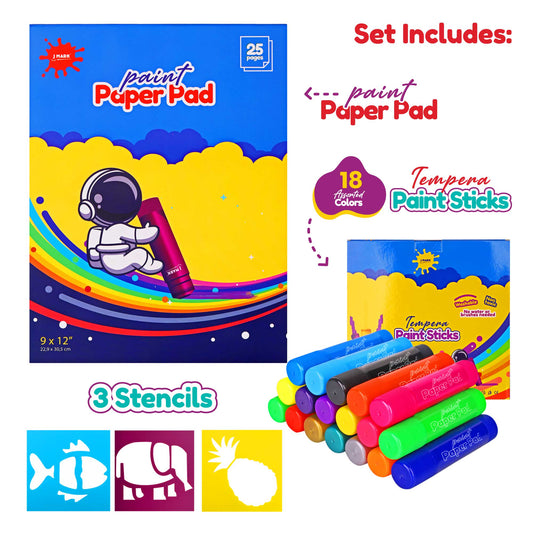 J MARK Solid Tempera Paint Sticks - Including Painting Book and Stencils...