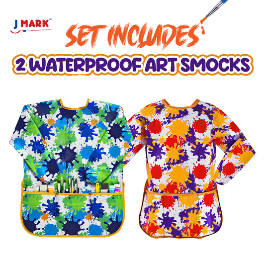 J MARK Waterproof Kids Art Smock Painting Apron 2 Pack Long Sleeve and 2...