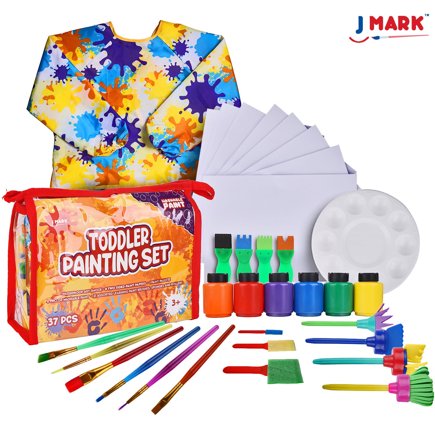 J MARK Complete Toddler Painting Set – Includes Washable Toddler Paint, Art Smock, Toddler Painting Paper, Brushes, Brushes, Toddler Art Set Painting Tools and More